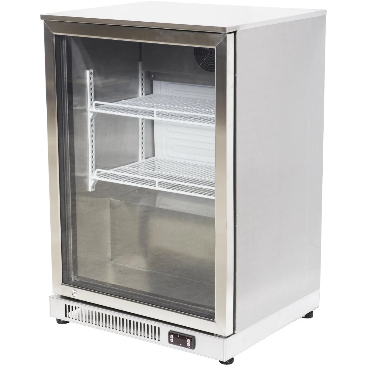 High quality commercial back bar fridge with high quality compressor and digital thermostat. A very space saving undercounter beer fridge. This small bar refrigerator is for processional catering use.