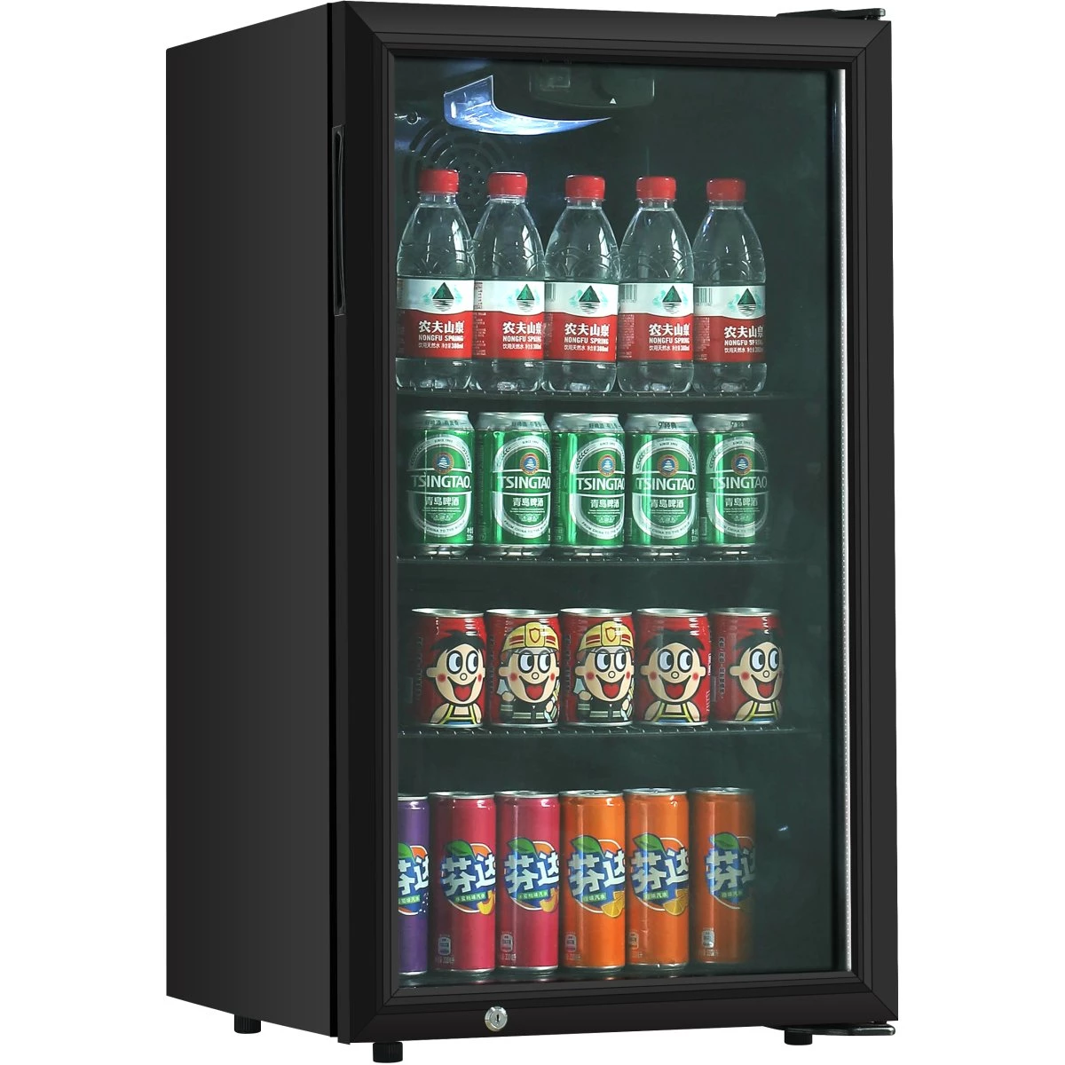 Commercial compressor chiller to be used as hotel minibar, bar beer fridge, store bottle cooler or regular glass door refrigerator. Also suitable for domestic use.