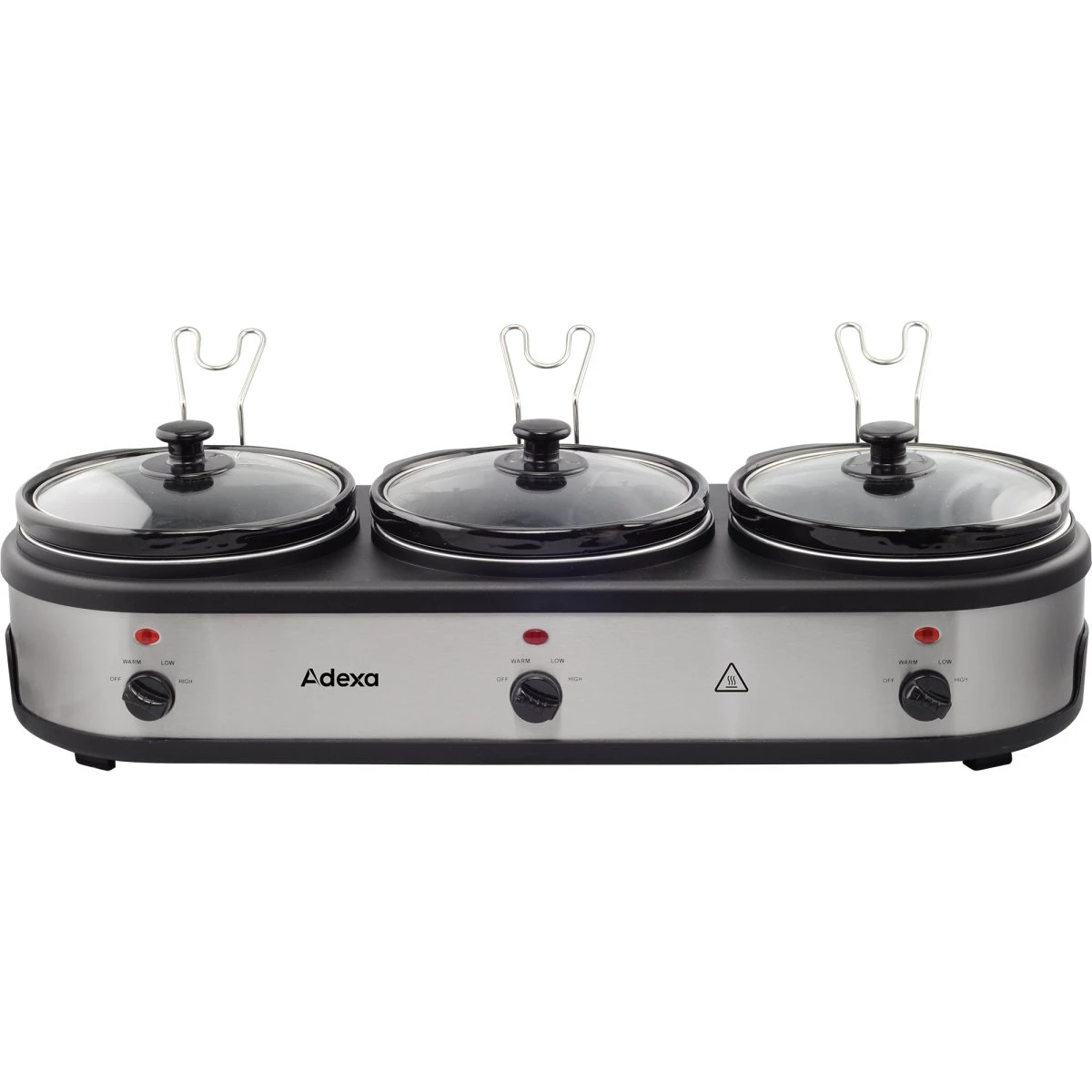 Entertaining guests or cooking for a large family got even easier with this 3 pot slow cooker. Each pot works independently with Keep Warm, Low or Hot Settings to maximise its use, all lids can be removed and held in place on the attached lid holder, then replaced onto the slow cookers when finished serving.