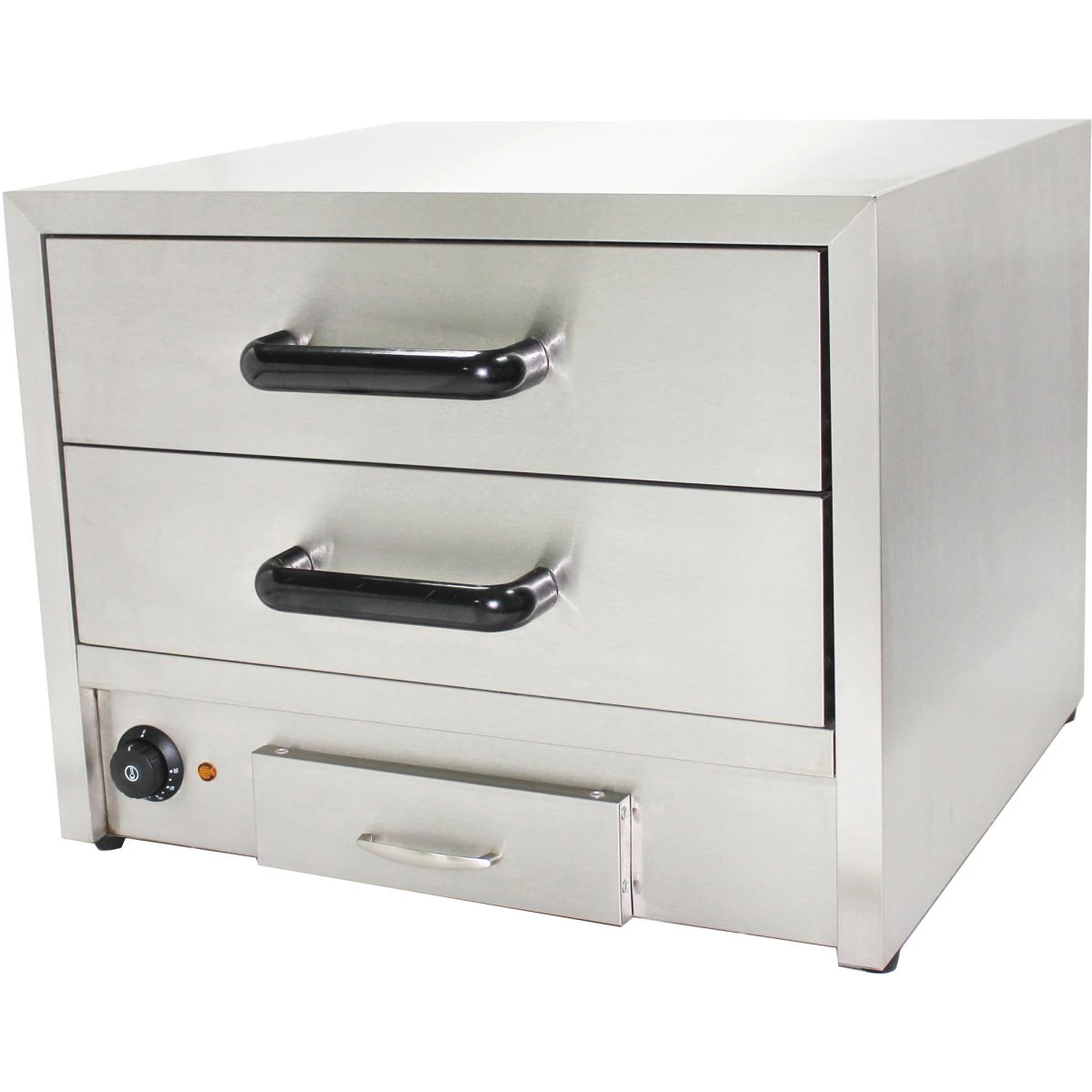 This 2-drawer professional warming cabinet is constructed of high-grade stainless steel has a water reservoir for its humidity function.