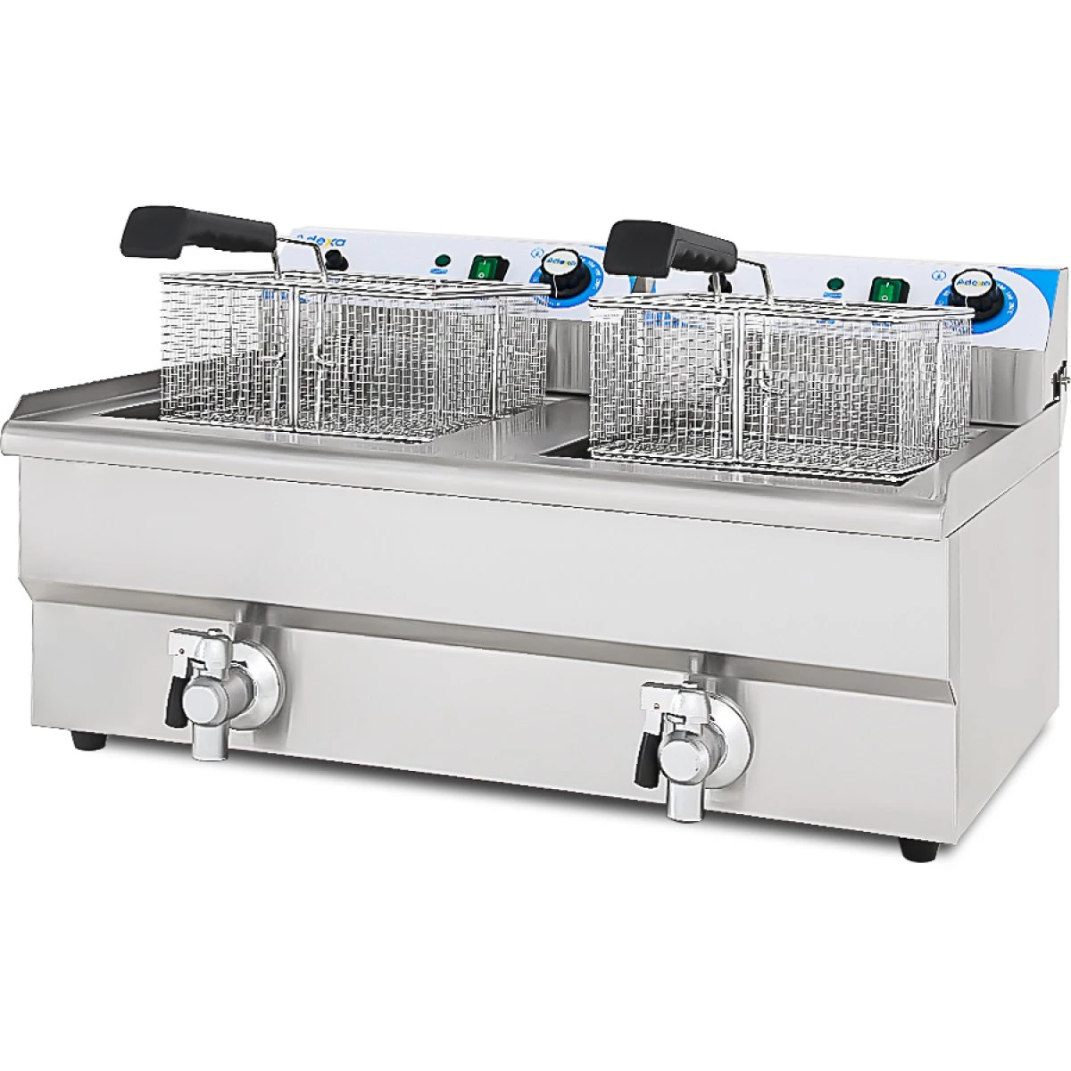 This professional countertop fryer is a compact and powerful deep fat frying solution for busy professional kitchens. Designed for reliability and performance, it offers two generous 20 litre tank and impressive cooking power. Whatever you’re frying, this is a premium option which makes cooking fast and easy. Cleaning is simple too, thanks to the front mounted drain valve and single-piece oil tank.