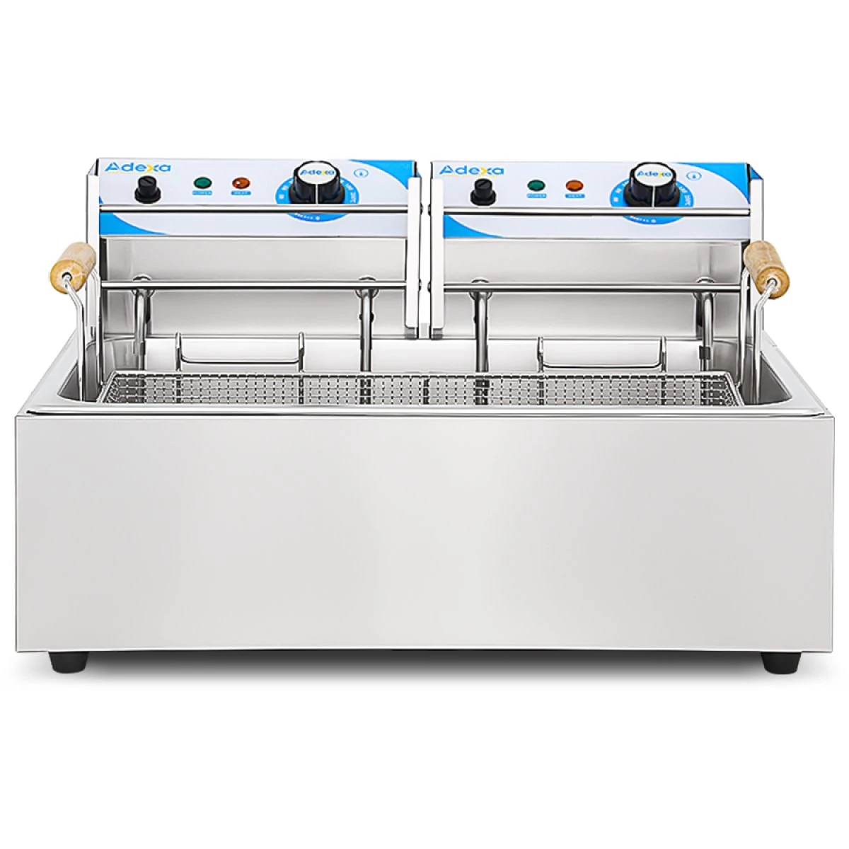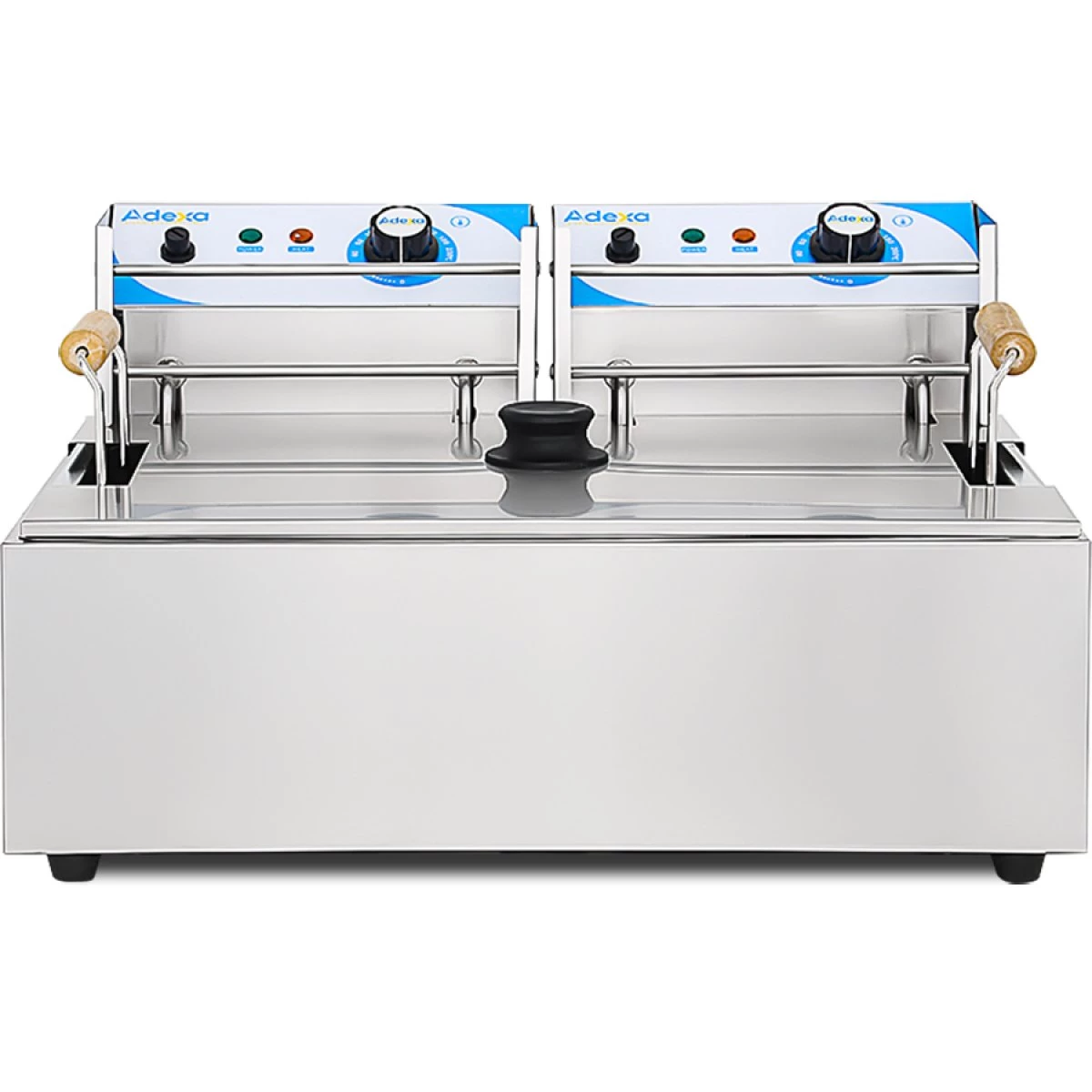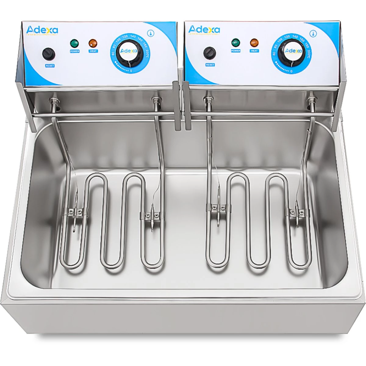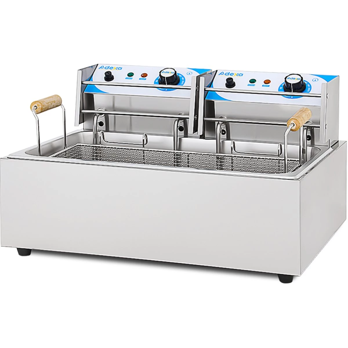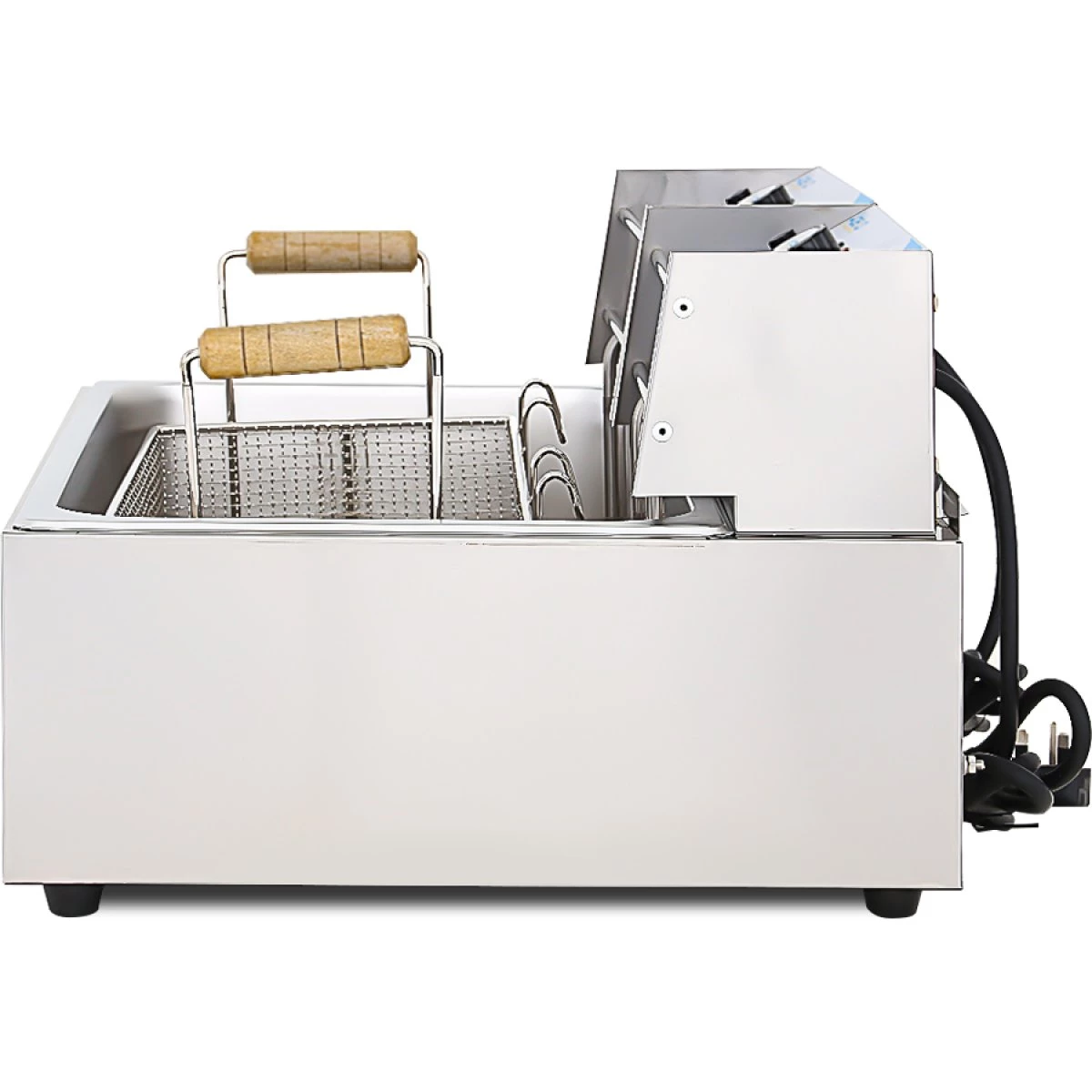 Professional doubled sized single tank deep fat fryer at a huge sale discount. This high quality countertop fryer is suitable for takeaways, restaurants, cafes, shops and other catering establishments.