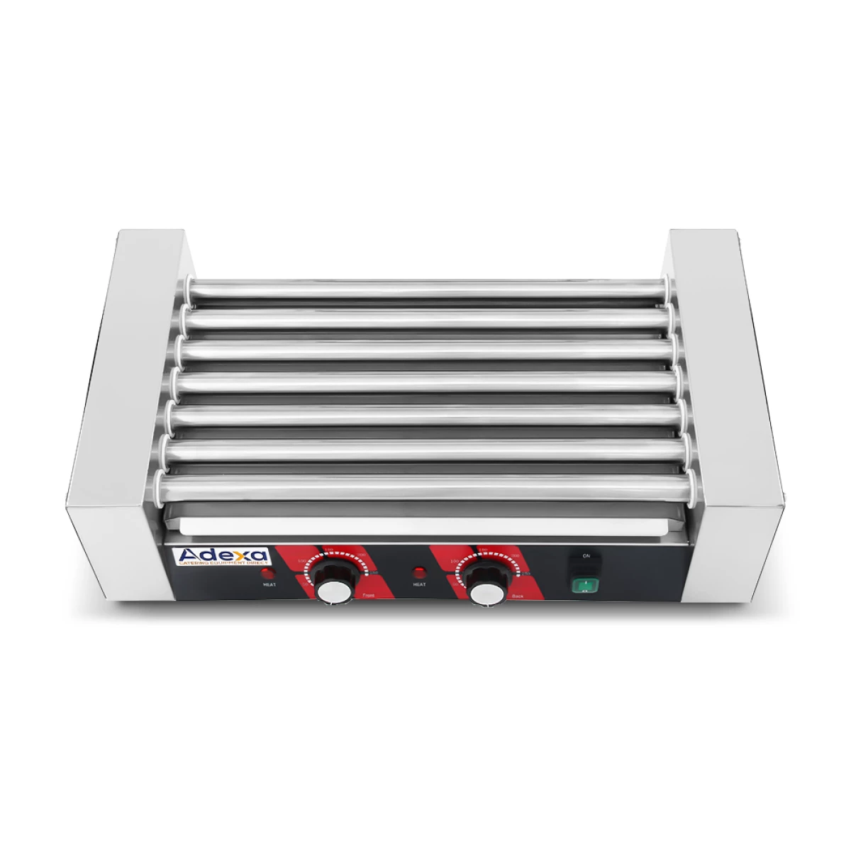 - Dual temperature controls cook hot dogs on the front rollers at a higher temperature while keeping hot dogs warm on the rear rollers