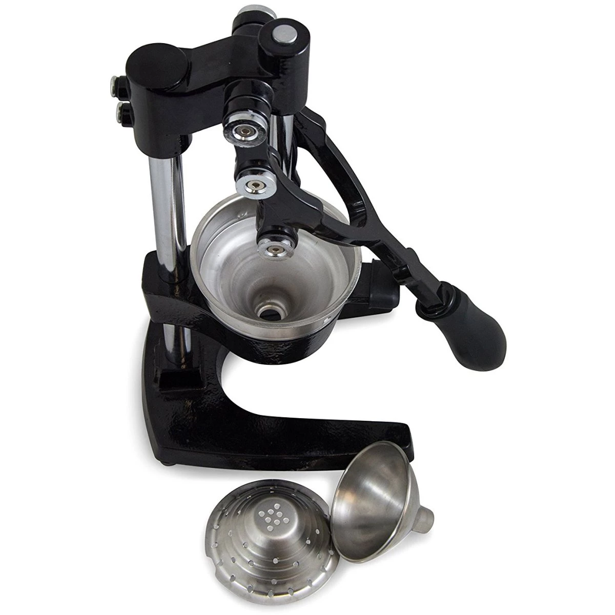 - Heavy base with rubber feet keep this heavy duty juicer sturdy and in place