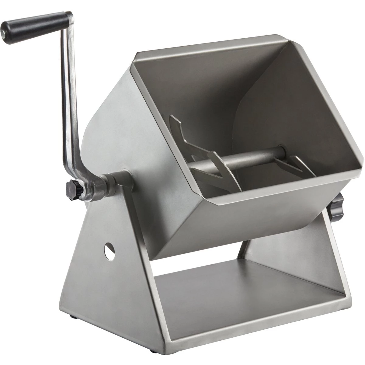 Mix meats, vegetables, and much more together efficiently with this meat mixer. With a simple-to-use crank that rotates the paddles inside, this mixer will ensure that herbs and spices are mixed consistently throughout your meat products. Ideal for a variety of establishments, this meat mixer can be used in restaurants, delis, and butcher shops.