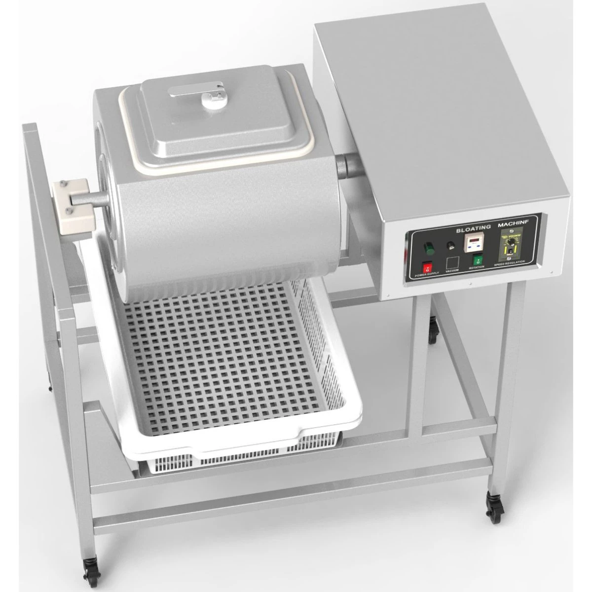 Marinade machine (also known as Tumbling Machine or Bloating Machine) makes regular foods become gourmet meals using spices, dry rubs and salad dressing. It has a large capacity for large cuts of meat, whole chickens, racks of ribs, turkey breasts ets. Can be used to marinade chicken, meats, vegetables, salads and desserts. No more tossing, it does it for you. It is easy to clean. The revolving speed is 32 rounds per minute. You can marinade 30 kilograms meat in as little as 12 minutes.