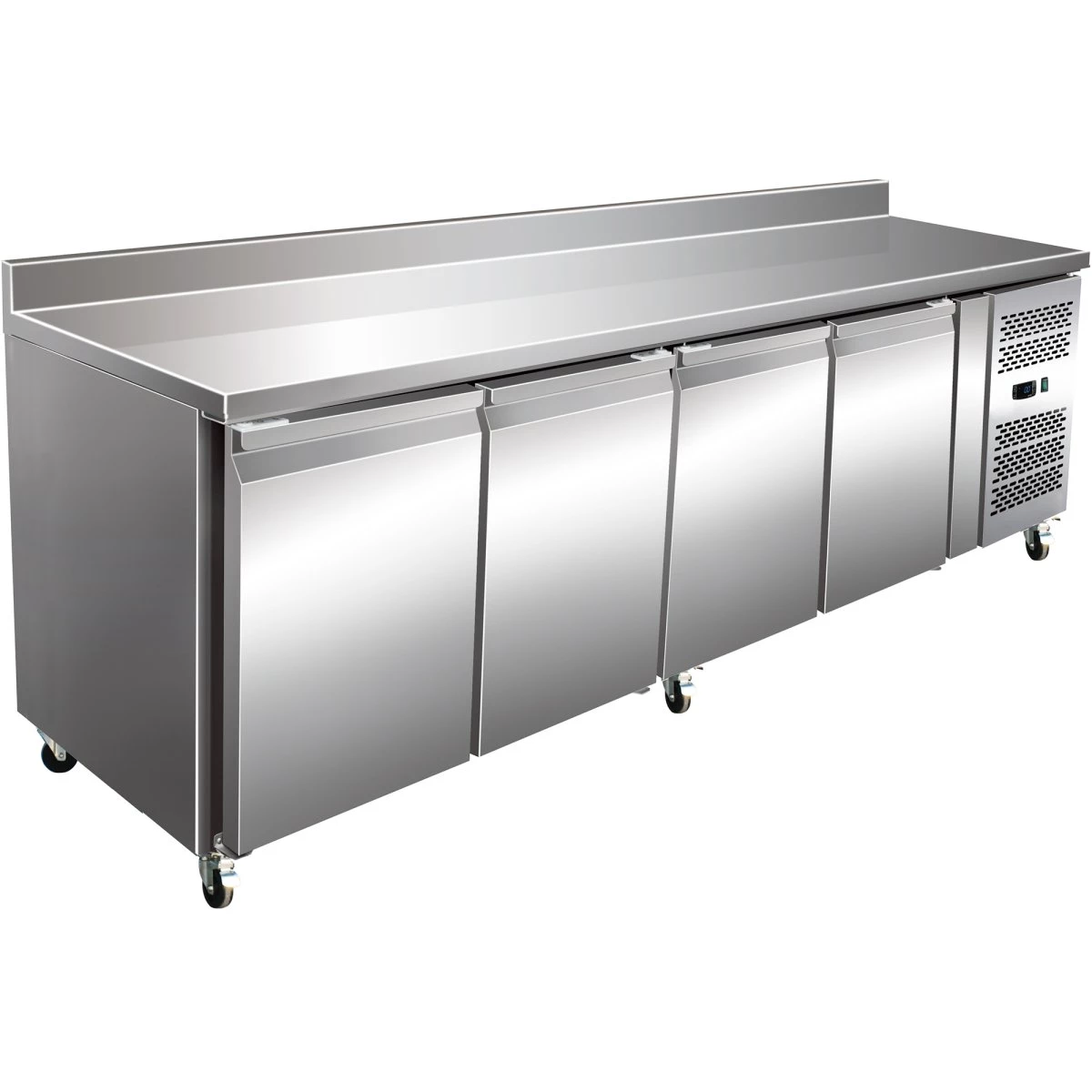 Professional counter chiller with four stainless steel solid doors and 4 castors included. This bench fridge also comes with a range of useful features which are certain to make life in your catering & professional restaurant kitchen considerably simpler.
