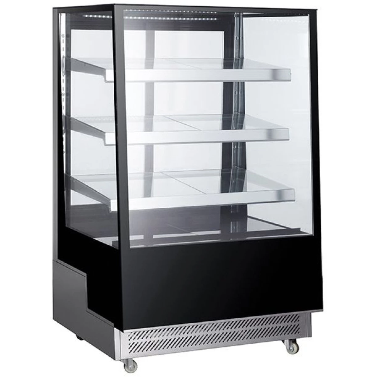 Professional cake counter showcase perfect for displaying chilled merchandising of pastries and cakes and snacks in cafes, shops, resturants and bakeries. This discount cake fridge stand is great value for money.