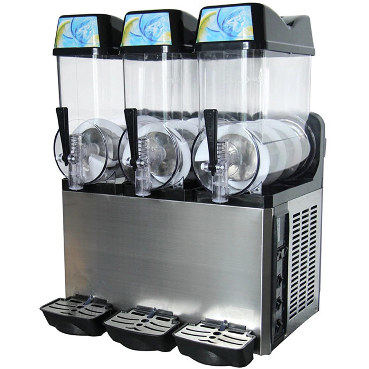Designed with three12 litre tanks, this slush machine lets you serve multiple flavours at once. The slush machine is made with a powerful cooling system that allows you to start serving drinks from as little as 40 minutes after activation – allowing you to serve guests faster. The digital display, electronic temperature and speed controls all aid in making the setting-up process easier, whilst allowing you to customise settings to serve anything from chilled drinks to ice-cold slush. Crafted from a mixture of stainless steel and APS plastic, the slush machine is highly durable and easy to clean after use. As well as this, both tanks and dispensing nozzles can be individually removed and thoroughly cleaned – helping to maintain a hygienic service.