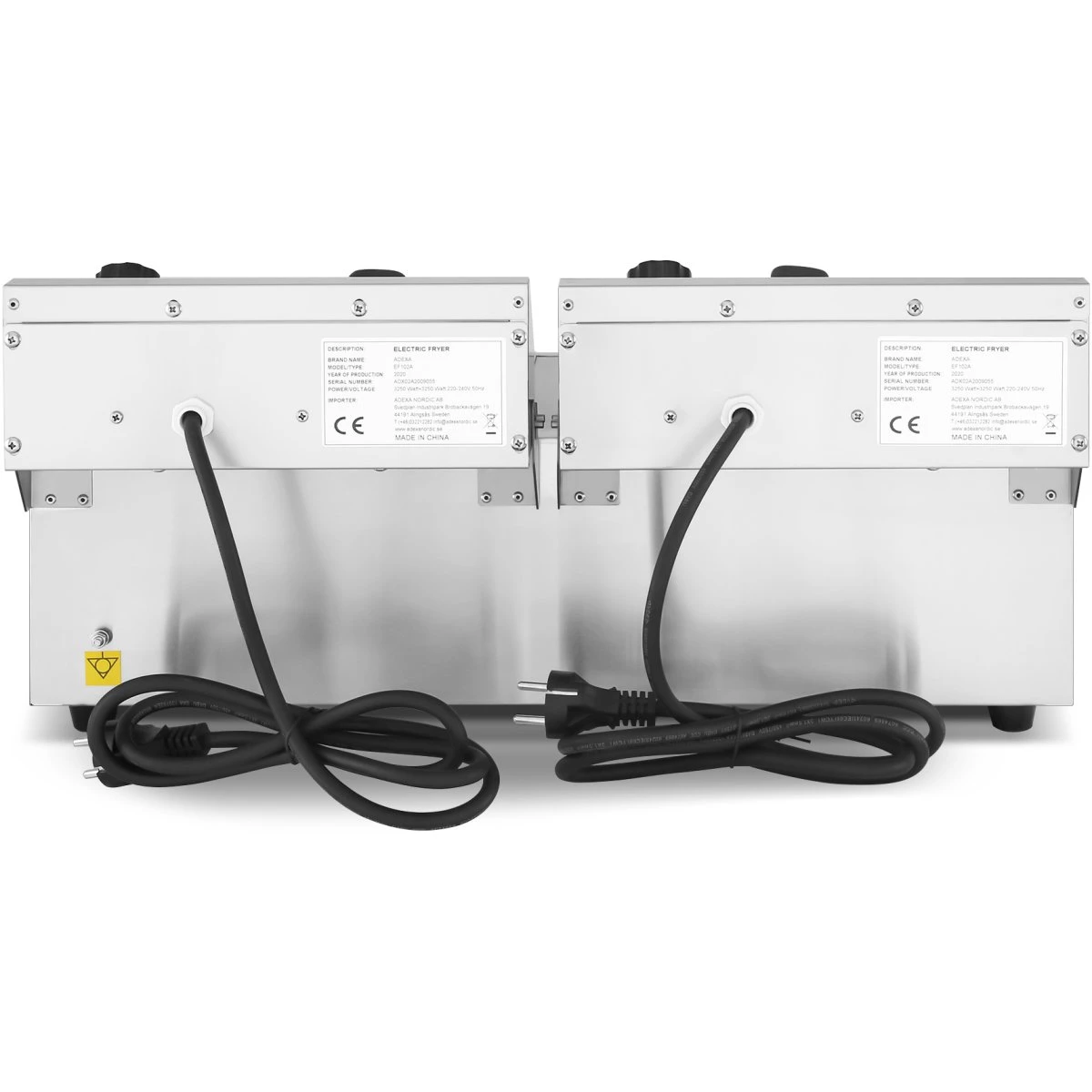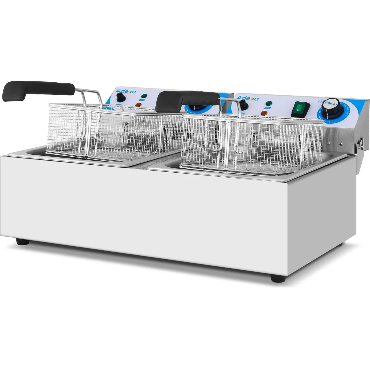 Professional twin tank deep fat fryer at a bargain discount price. A fully stainless steel fryer featuring variable heat control and safety cut-out making the machine safe and ideal for use with a wide variety of foods. Two chambers gives you great versatility, with two different types of food able to be cooked at one time. The stainless steel construction and removable inner pot and control panel allow for easy cleaning.