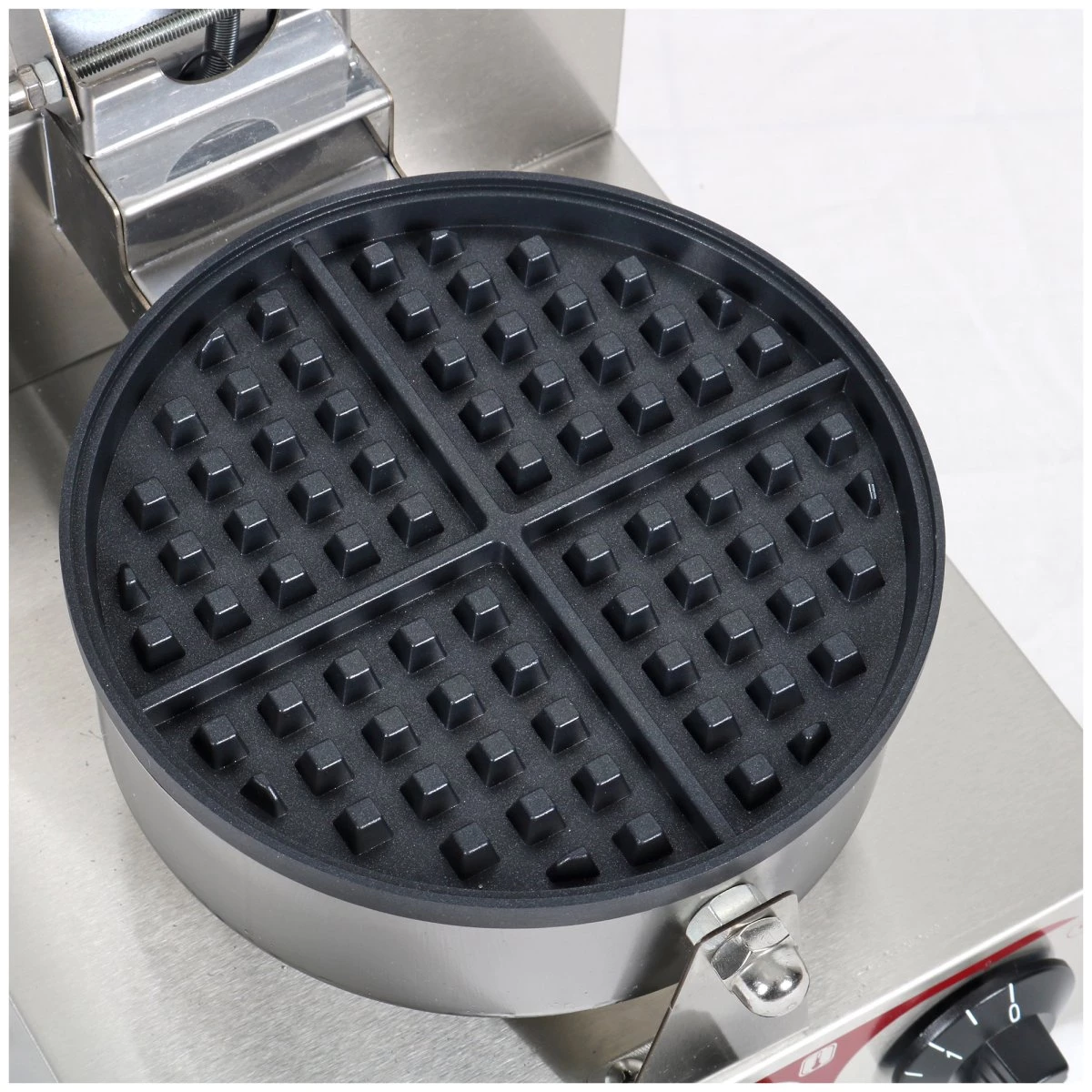 - Non-stick plates with Teflon plating to allow for easy removal of waffles