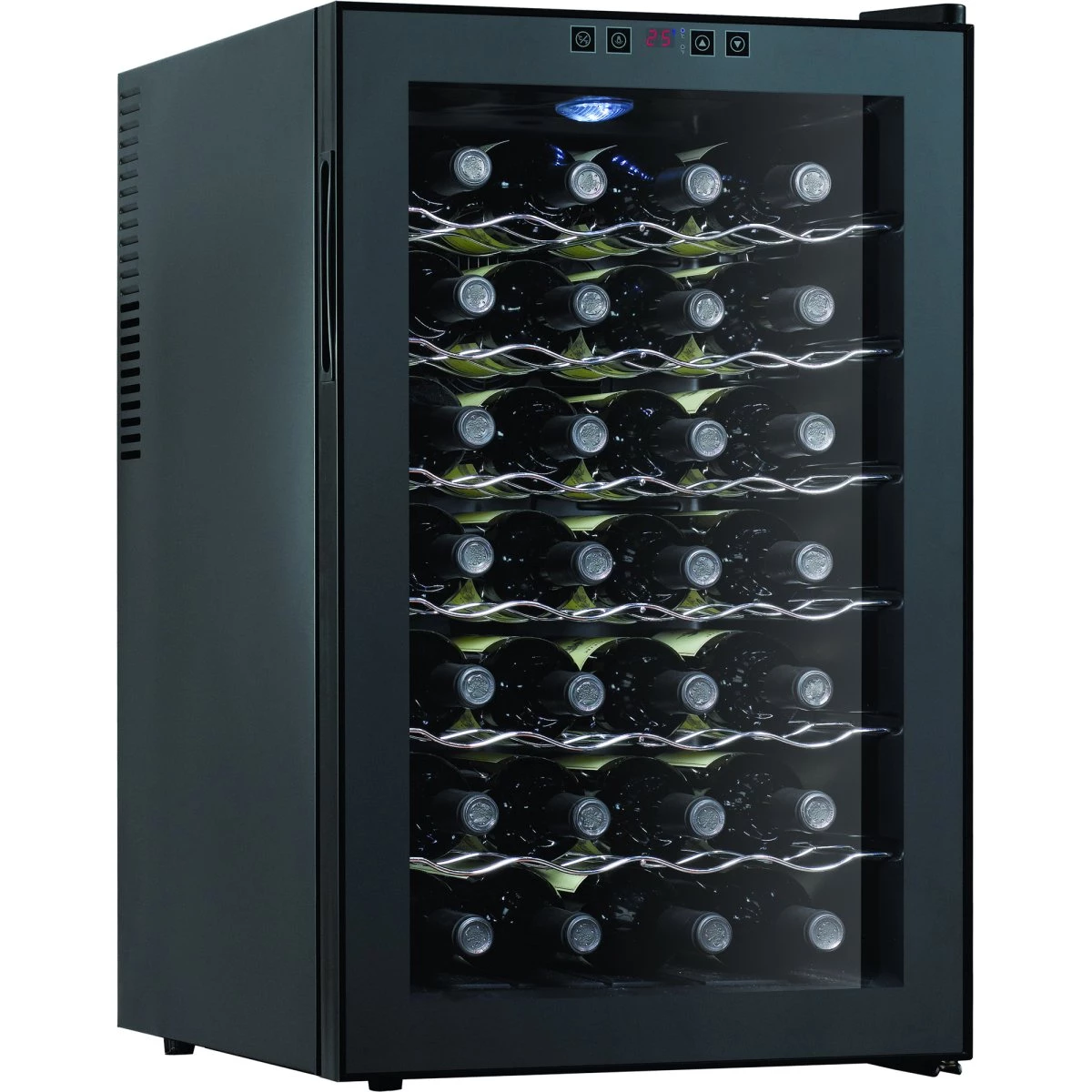 Safely store wine while having it perfectly chilled and ready to serve with this single-section, single-temperature full glass door wine refrigerator. It ensures temperature is not affected by outside heat sources. Set the temperature and let the wine cooler do the rest. With a built-in fan that maintains a consistent temperature throughout, this cooler ensures an optimal environment for long-term wine storage.