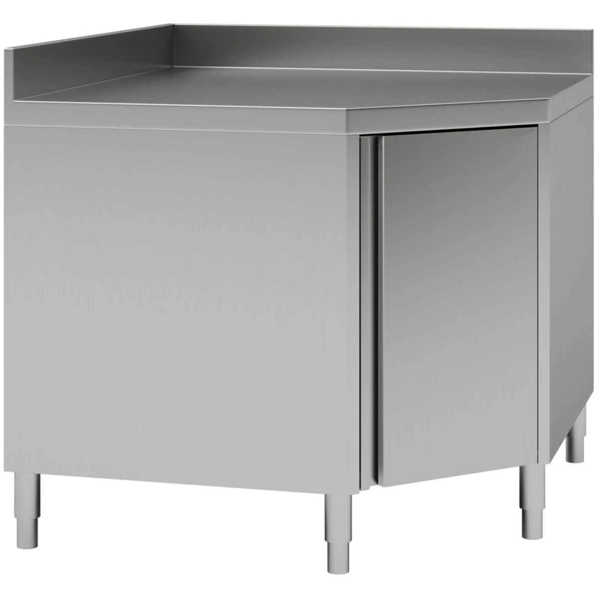 Premium professional worktop corner cabinet suitable as a stand alone corner unit or together with other kitchen cupboards or work tables with a depth of 600mm. Ideal for any restaurant or other catering kitchens.