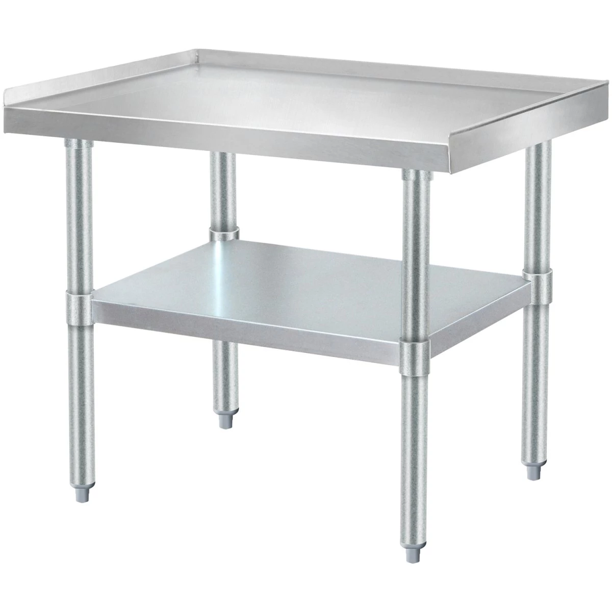 Support your commercial catering kitchen equipment with this professional stainless steel equipment table! This table features a durable stainless steel top shelf with raised edges to keep your equipment securely in place throughout your busy work day. An additional undershelf offers even more storage possibilities so you can keep everything you need close at hand for a convenient, streamlined operation.