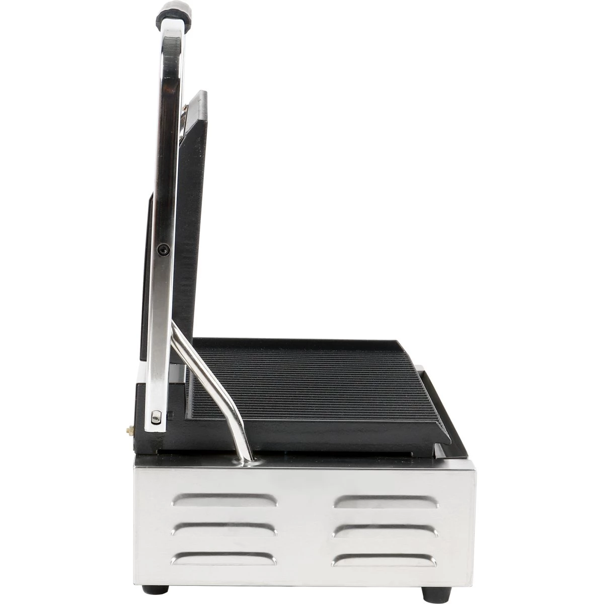 Grill your most popular sandwiches to perfection with this multi contact panini sandwich grill! This grill features smooth cast iron plates to evenly cook sandwiches and leave tantalizing grill marks on the bread. The thermostatic controls let you adjust temperatures so you can cook at the perfect temperature, while the stainless steel exterior frame ensures long-lasting durability. Great for grilling paninis, sandwiches, bread, and even hamburgers and quesadillas, this versatile grill will add variety to your establishment!