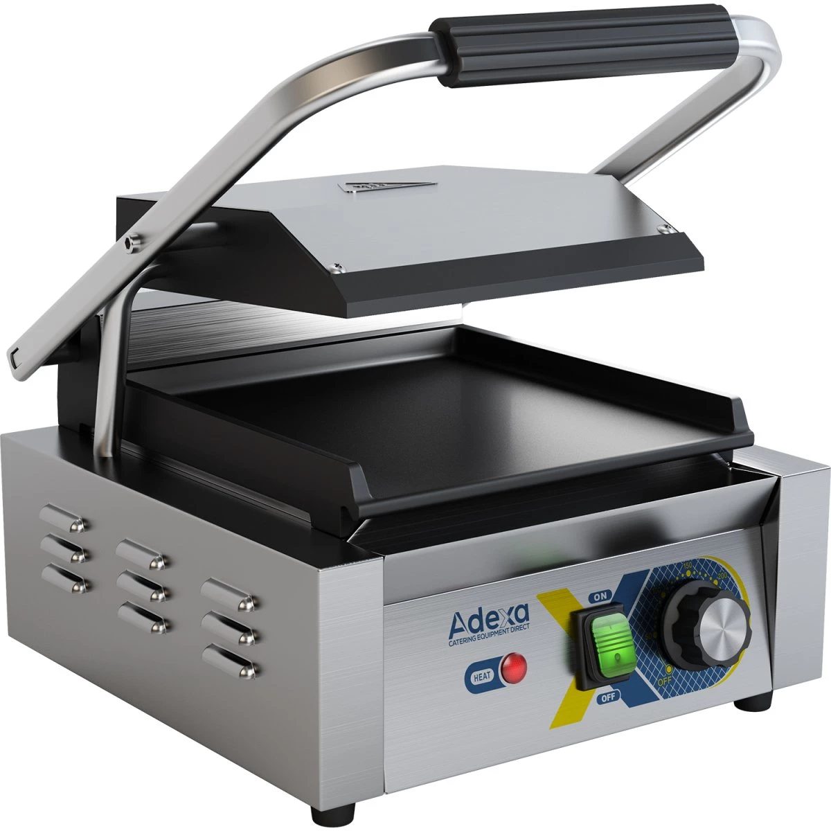 Grill your most popular sandwiches to perfection with this multi contact panini sandwich grill! This grill features smooth cast iron plates to evenly cook sandwiches and leave tantalizing grill marks on the bread. The thermostatic controls let you adjust temperatures so you can cook at the perfect temperature, while the stainless steel exterior frame ensures long-lasting durability. Great for grilling paninis, sandwiches, bread, and even hamburgers and quesadillas, this versatile grill will add variety to your establishment!