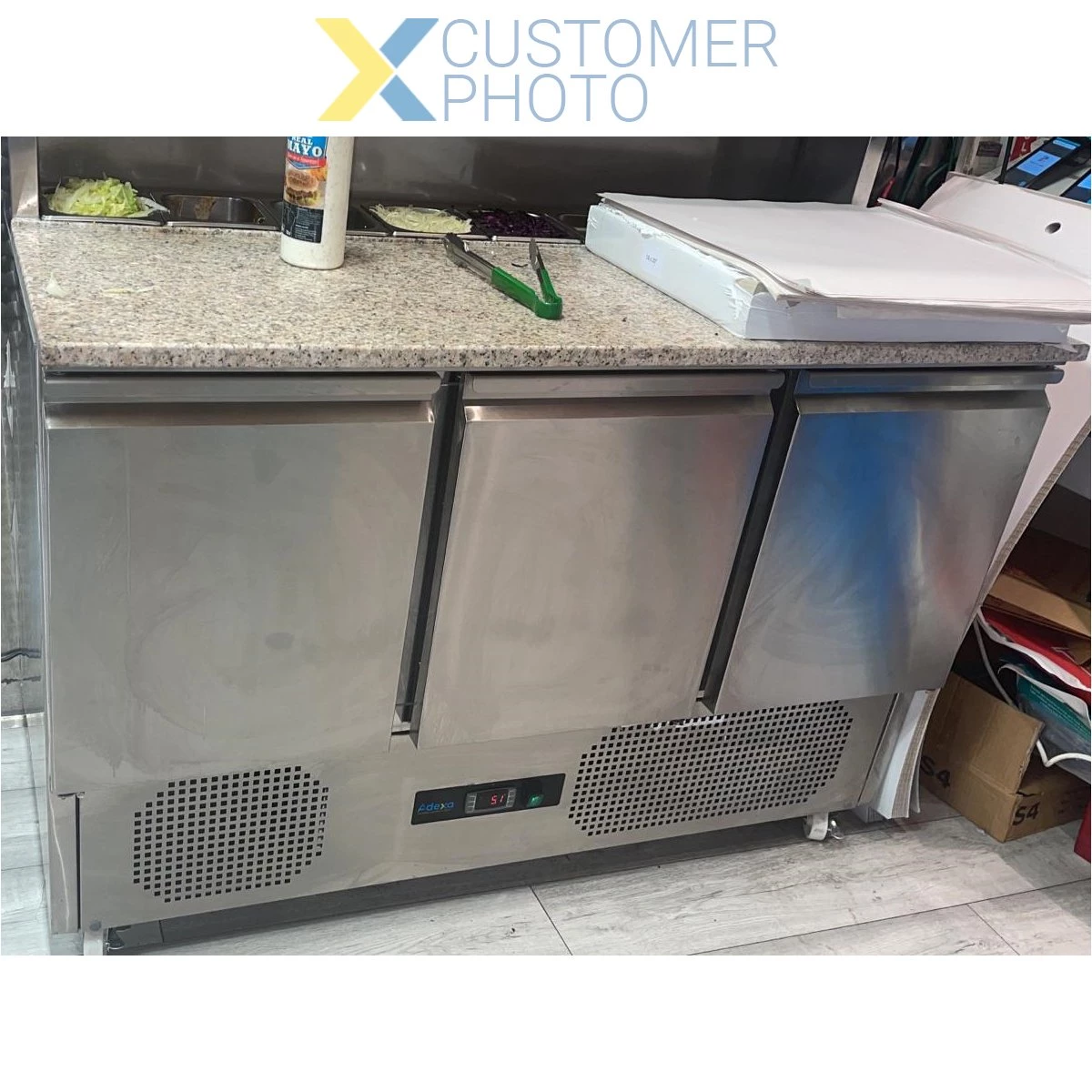 This top quality style refrigerated pizza prep counter with granite top is designed to give outstanding performance day after day in all, busy catering establishments. Ideal for restaurants, bakers, butchers, deli shops, sandwich bars, supermarkets etc. It is built of top quality stainless steel and will give a high level of performance, reliability, style and outstanding value for money.