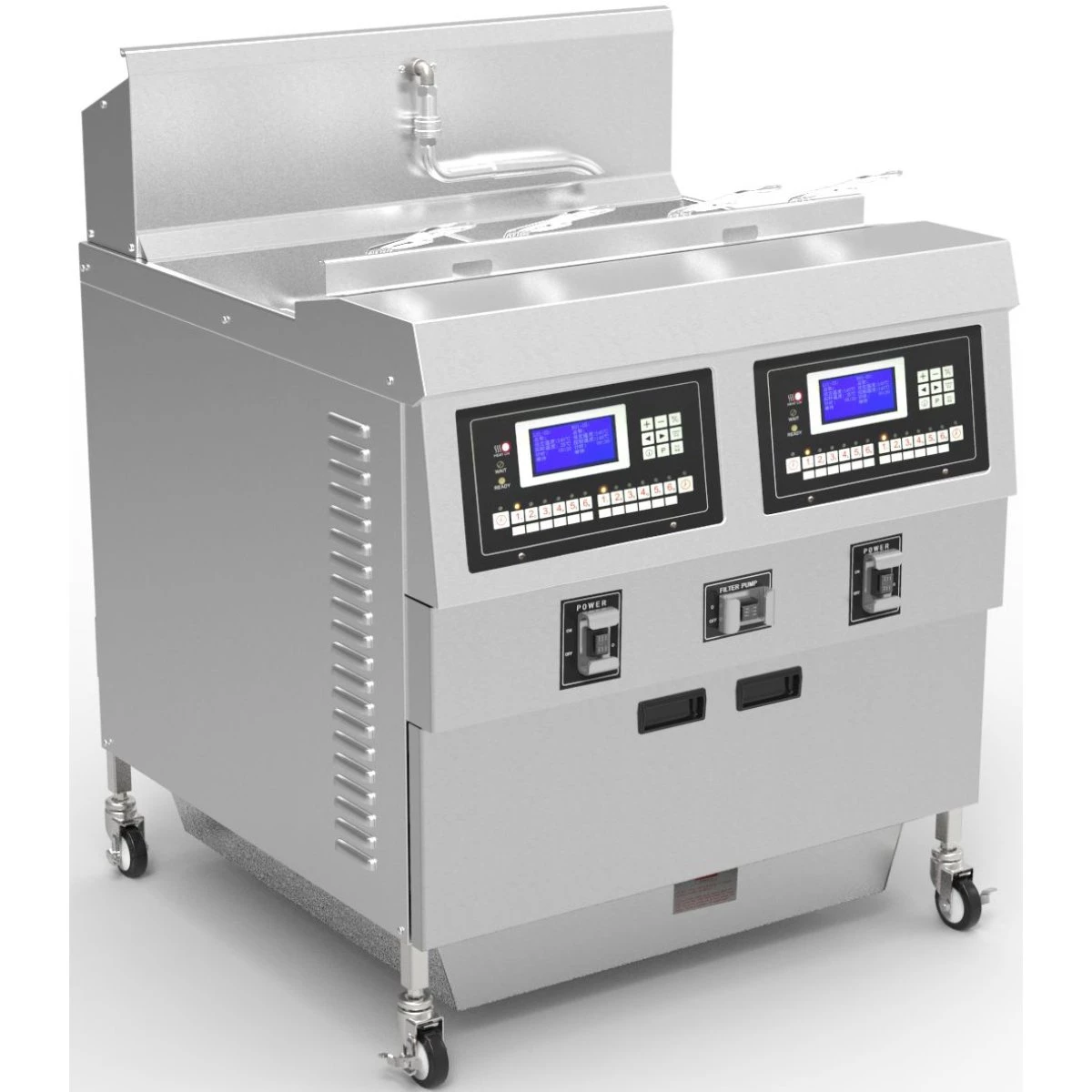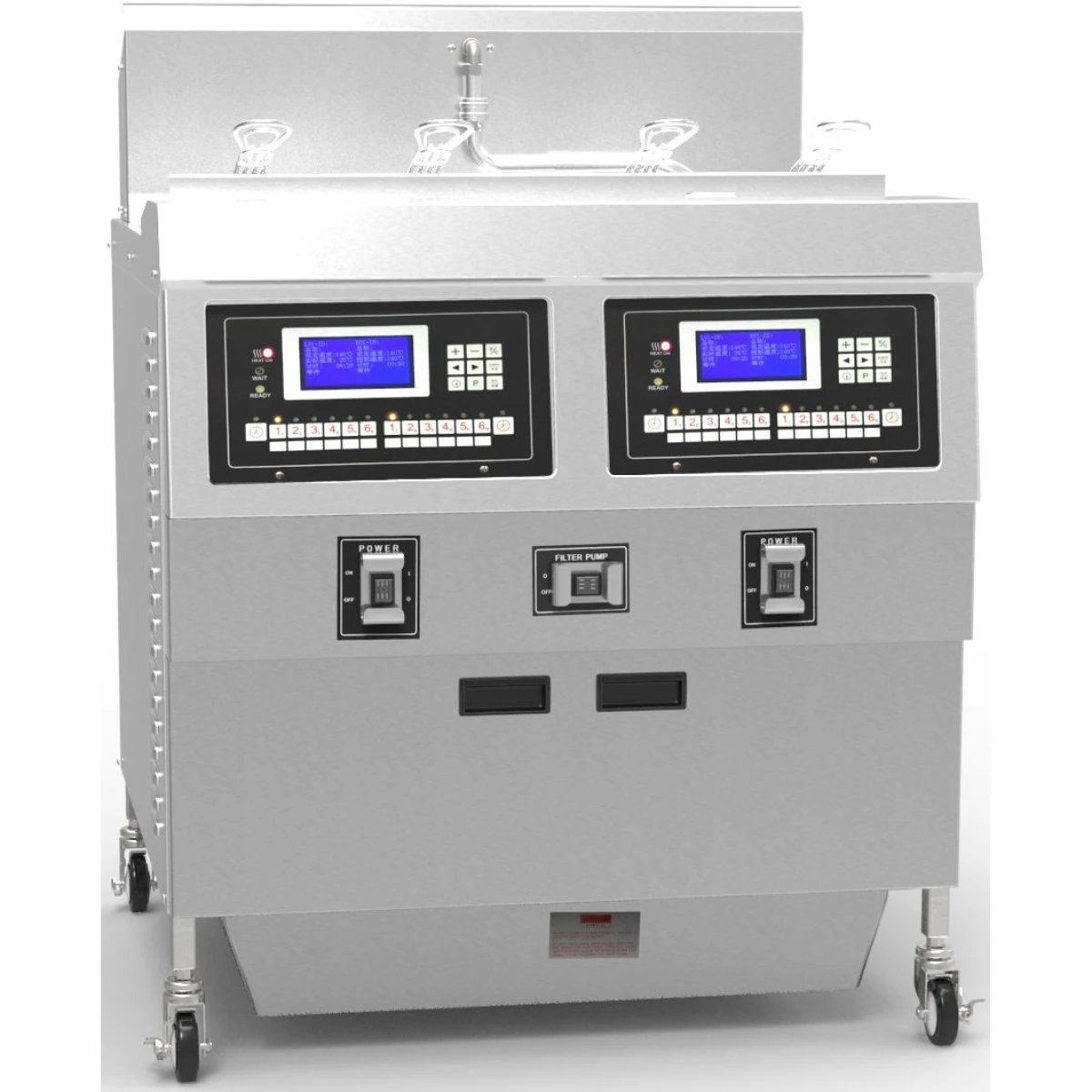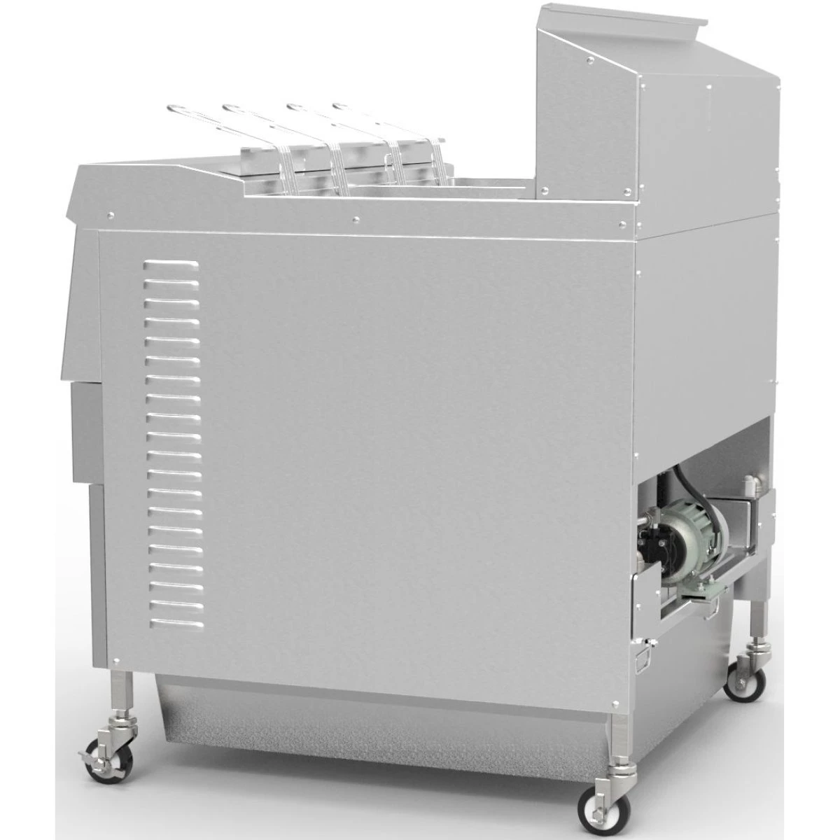 The ideal combination of efficiency and industrial scale volume, this high production electric floor fryer is an excellent addition to any restaurant looking to increase profits from chicken, chips, and other popular fried foods! This fryer features digital controls to let you make almost instant adjustments to your cooking cycles. They also ensure pinpoint accuracy when measuring oil temperature while allowing for high production and fast recovery times. The tank’s bottom slopes forward to help collect and remove sediment from the fry pot, and this unit’s front, sides, and doors are made of stainless steel for long-lasting durability.