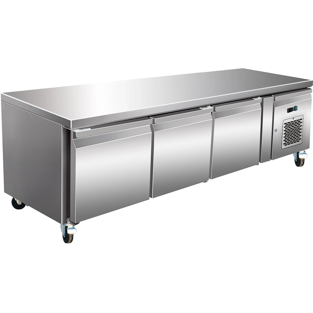 This commercial counter fridge (or low boy / underbroiler) is a fantastic solution for making the most effective use of your catering kitchen space. Designed to be highly sturdy and robust, this counter chiller allows you to position other appliances on top, such as grills, boiling tops, fryers or ovens. This is an incredibly space saving piece of equipment for your restaurant, hotel or bar.