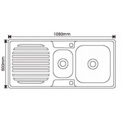 Drop In Sink With 2 Tap Holes & Draining Board 1 Bowl Stainless Steel | Adexa HMS77F
