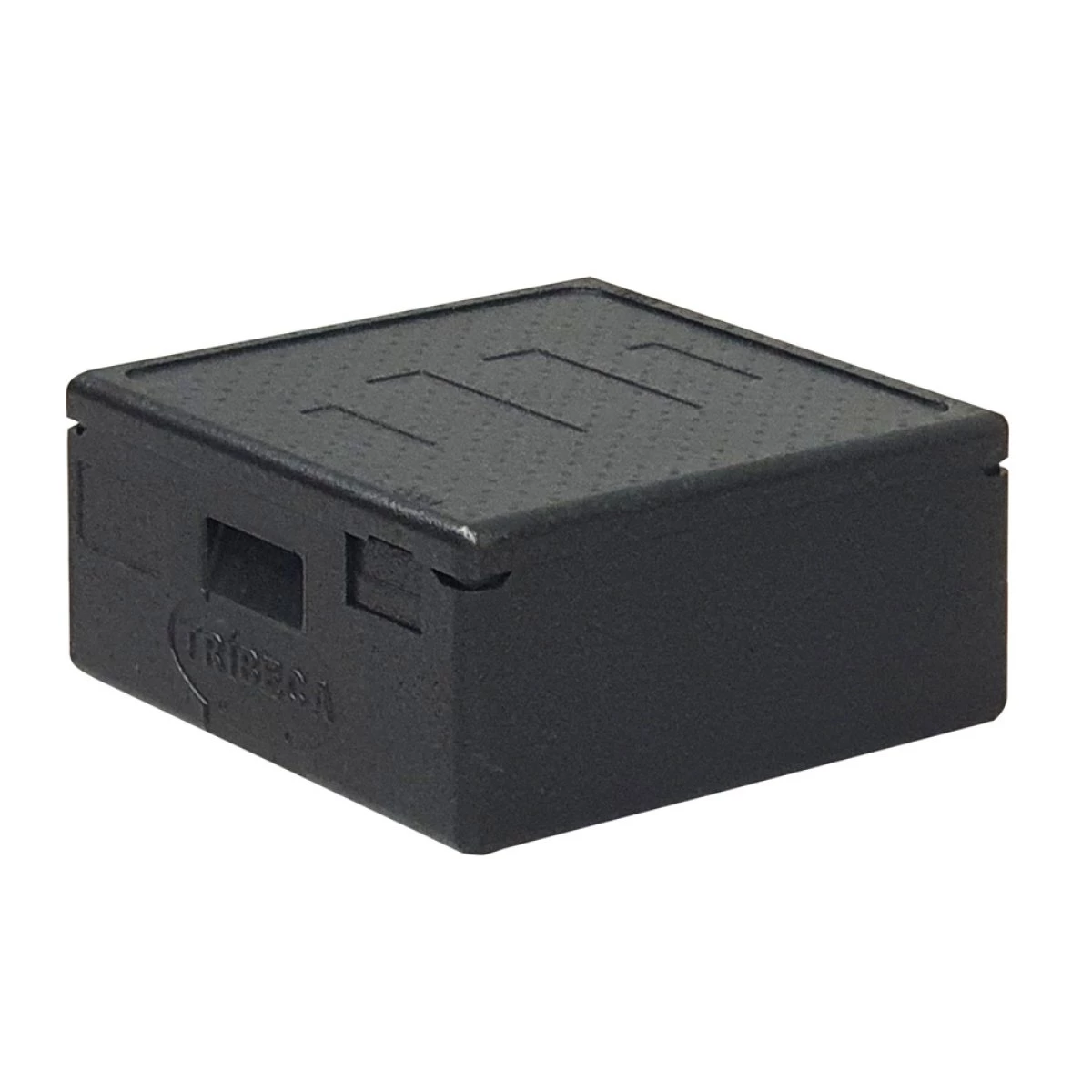 With excellent insulation (from -40°C to +120°C), robust structure made of CFC free Expanded Polypropylene (EPP), these pizza box transporters are durable, lightweight and stackable, as well as hygienic and dishwasher friendly! This transporter is perfect for hot, cold and fresh food, that is assisted by it’s tightly closed lid, and the steam vent will help keep pizzas crispy and in great condition. This particular item is top loaded and can hold up to 4 pizzas (350mm x 350mm)